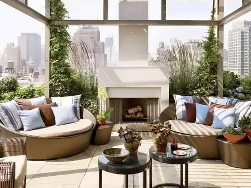 Salas con estilo redondeado para jardines, fincas, terrazas y exteriores
